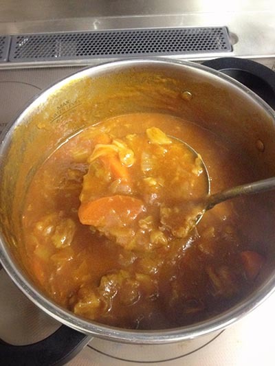 今回は、ちゃんととろみがついた(笑)カレーです。
