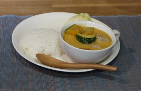 作ったレッドカレーペーストを使って、あっという間にできちゃうカレーです。
