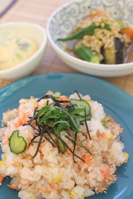 ご飯ものは、当初「夏の炊き込みごはん」としていましたが、夏にさっぱり食べられるちらしずしに変更しました!