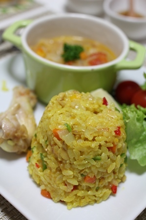 チキンのごちそうピラフと、ミネストローネスープ。