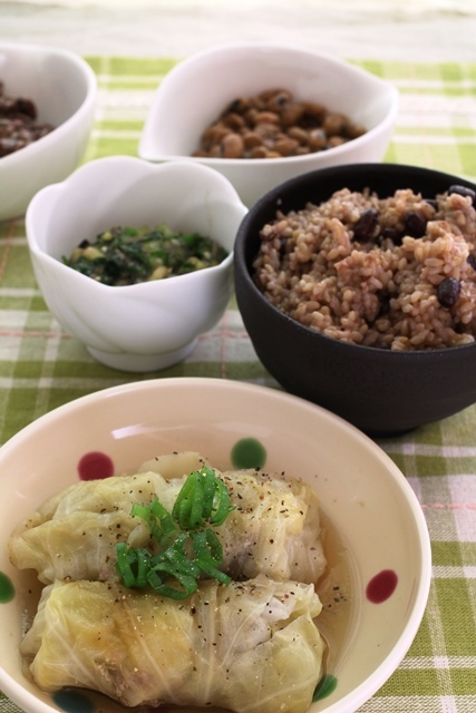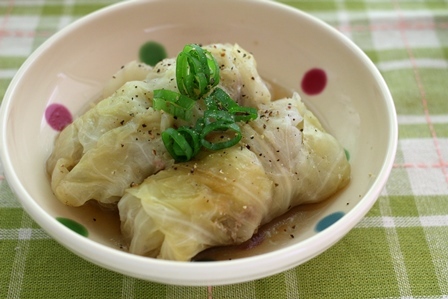 ロールキャベツは、1カップの水で煮て、仕上げに塩麹とおしょうゆで薄味に仕上げました。
