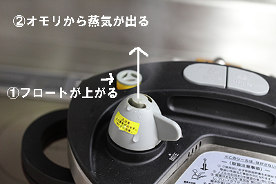 その後、圧力調整オモリからシューっと蒸気が出ます。