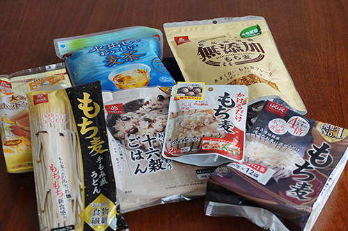 もち麦うどんや、大麦のホットケーキミックスなどなど。
