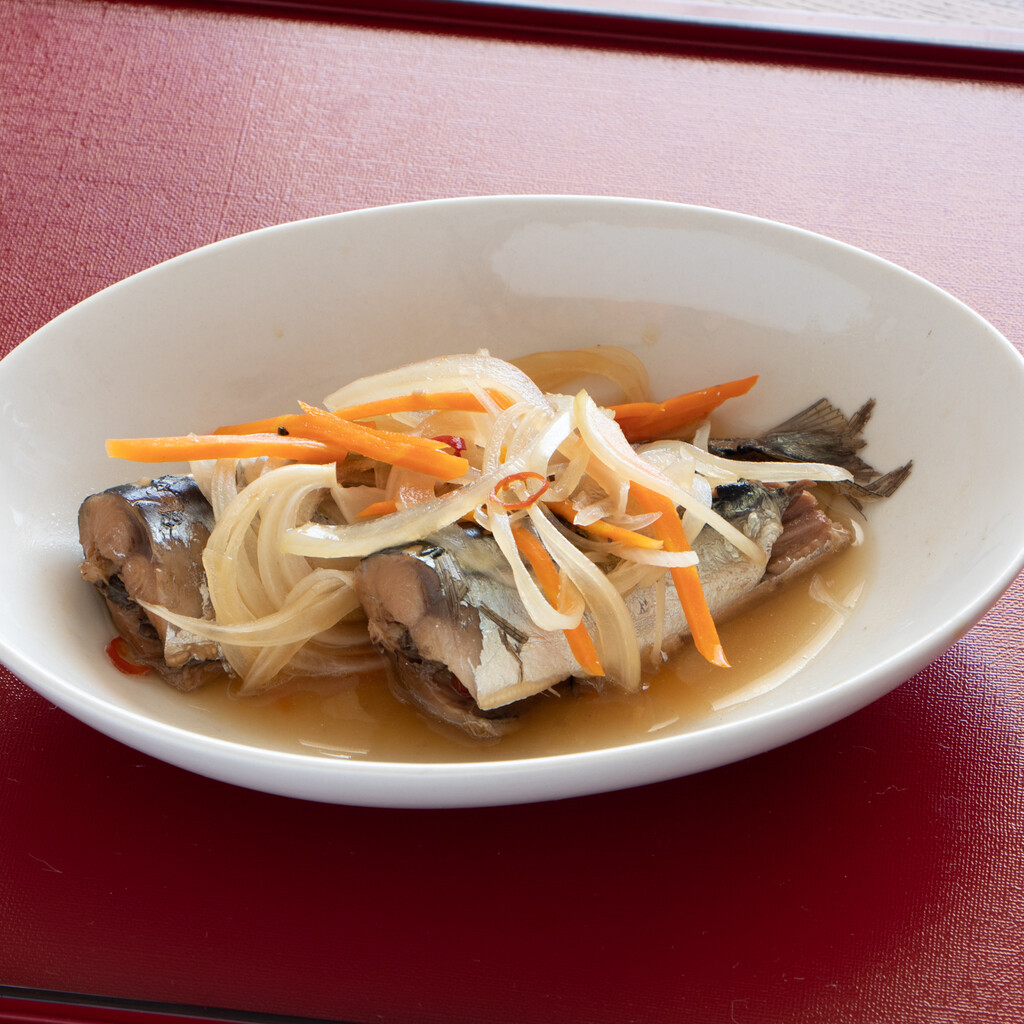 「骨までおいしいさんまの揚げない南蛮漬け」です。