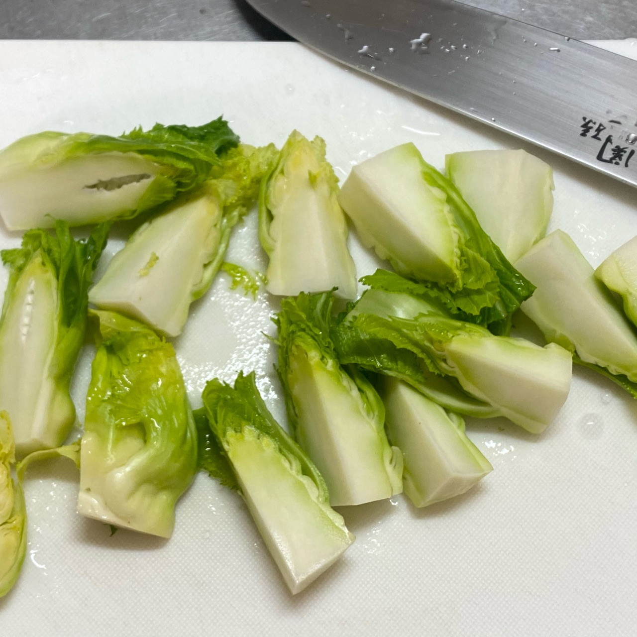 1)博多蕾菜は洗って、半分に切る。大きいものは4つに切る。
