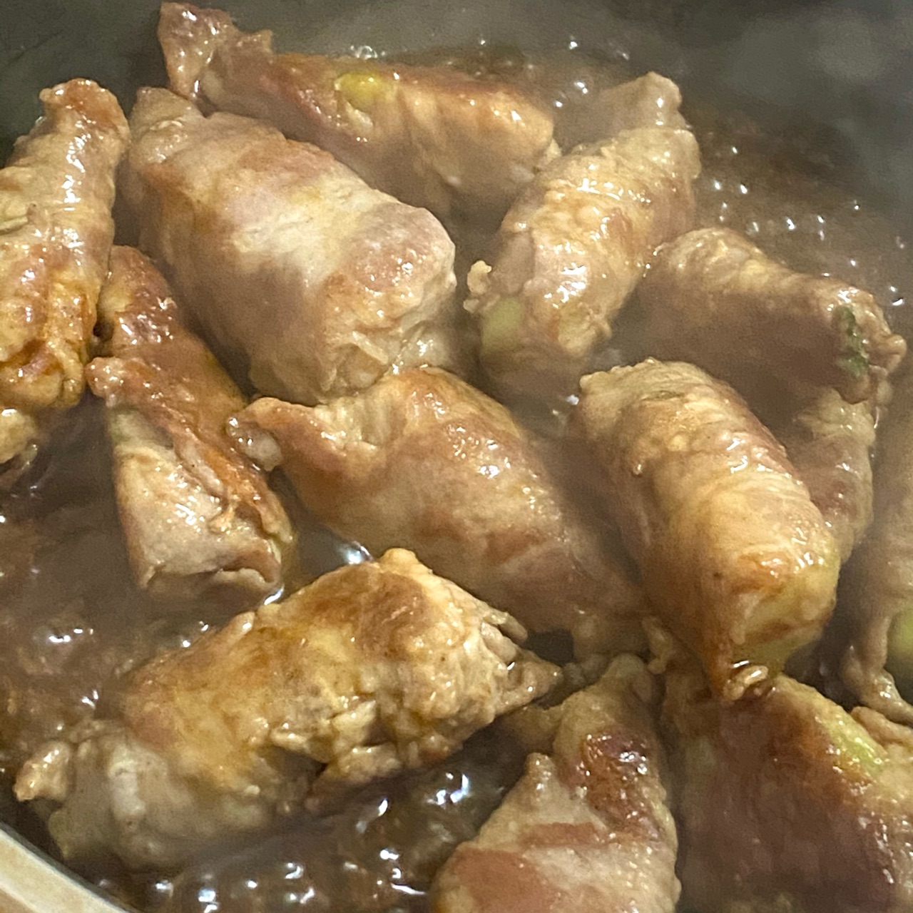 今回は、豚肉でクルクル巻いて、照り焼き風にしましたー!