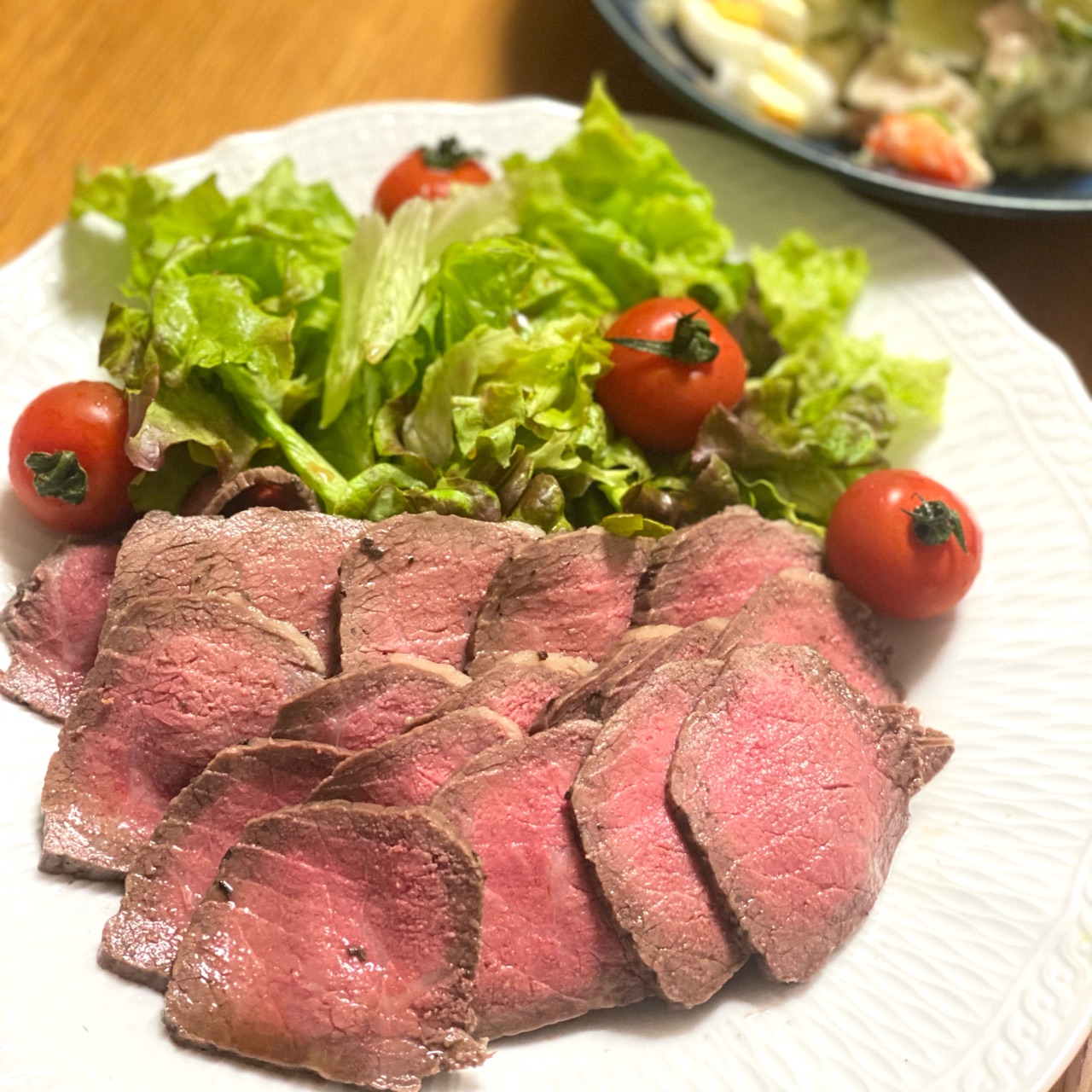サラダの中には、これまた圧力鍋で作った「自家製ハム」が
