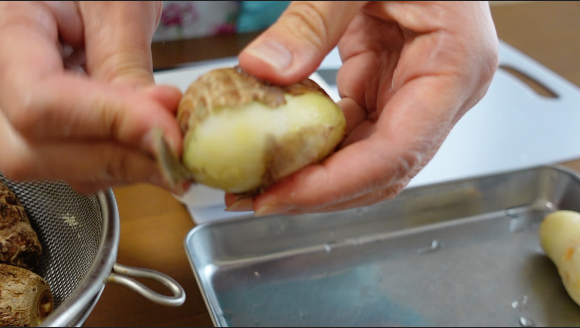 でも、生の里芋の皮をむくと、手がかゆくなっちゃう。