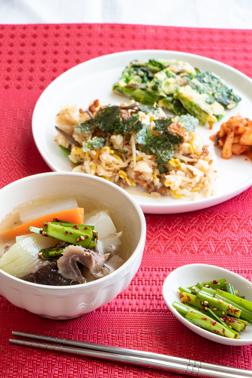 圧力鍋で韓流!牛すじスープとピビンパ風ごはん