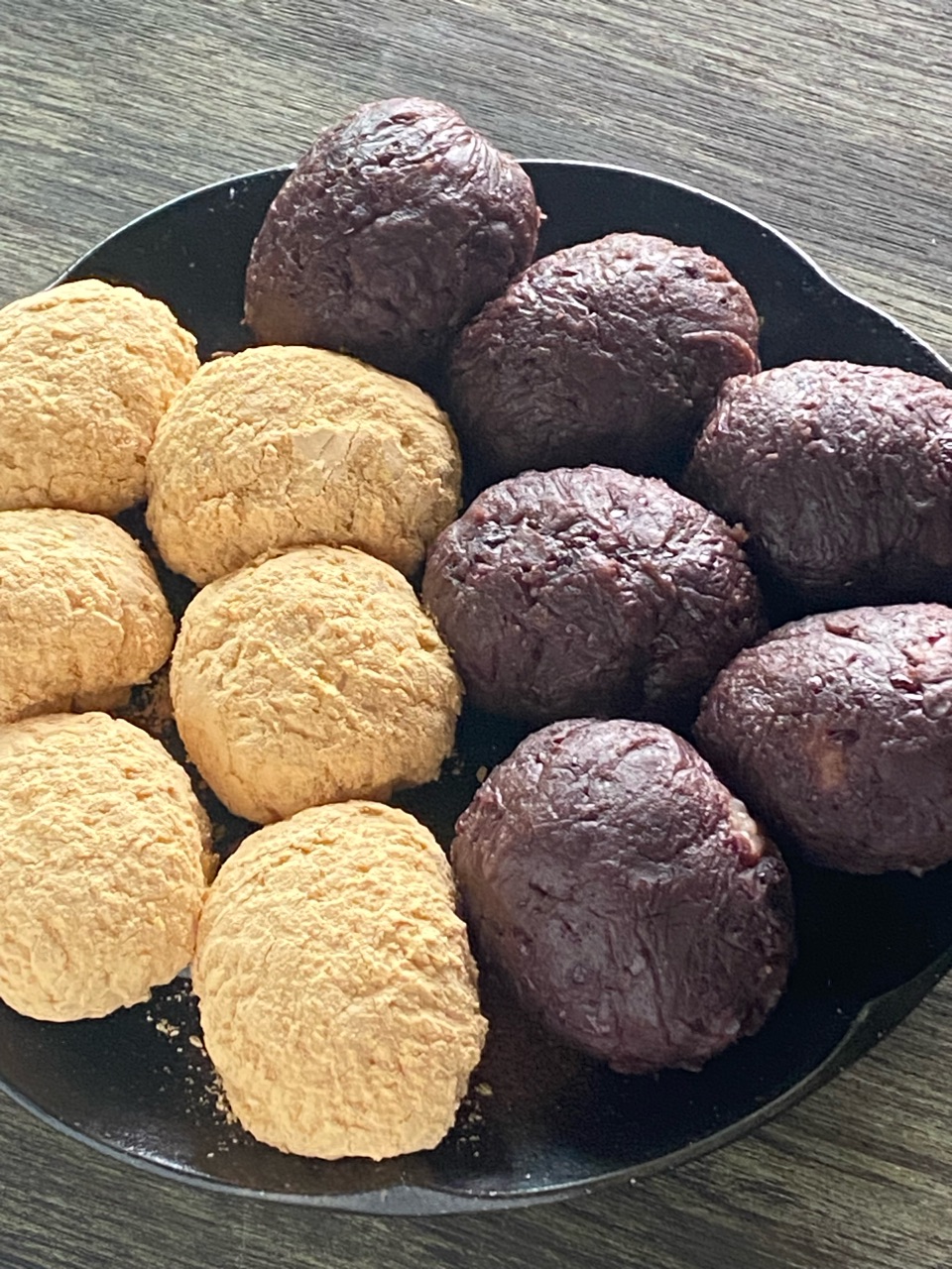 その間に、粒あんを25g程度に分けて丸めておく