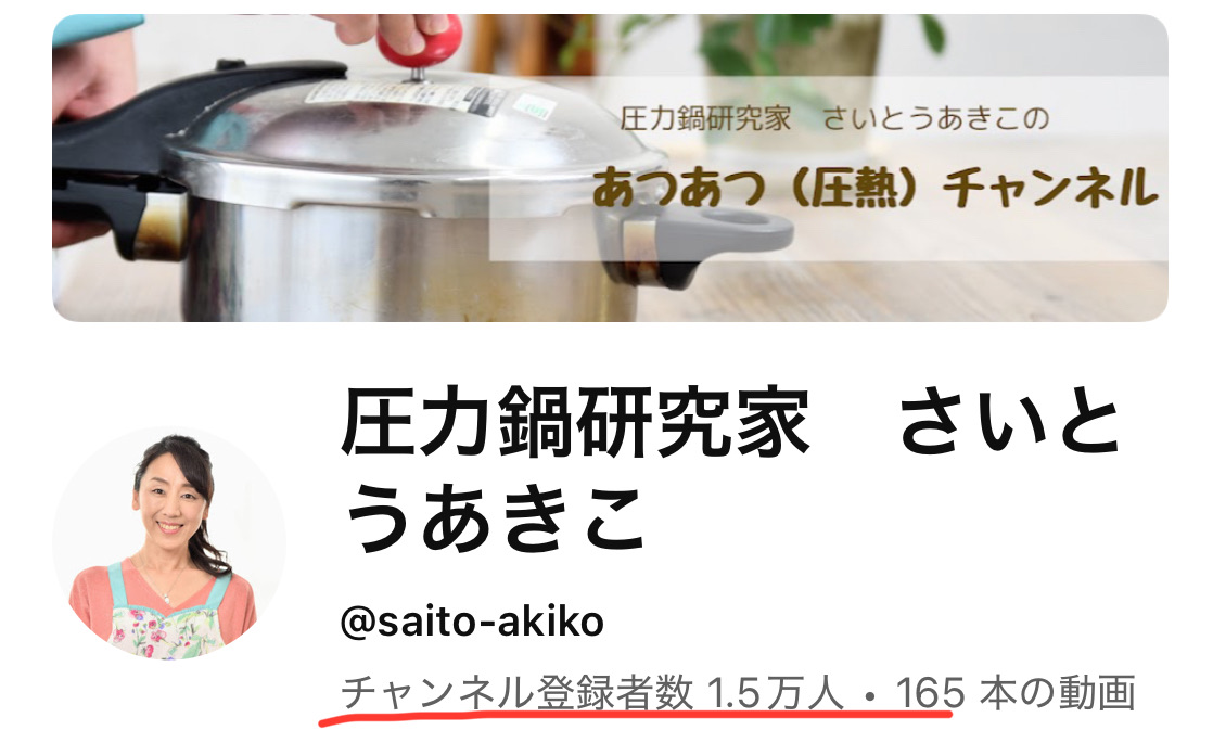 ◎圧力鍋研究家 さいとうあきこのYouTubeチャンネル