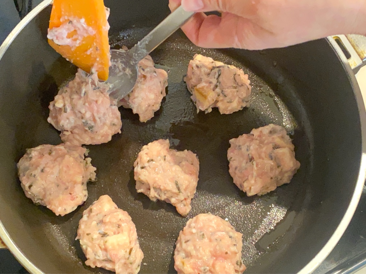 薄く油を敷き、カレースプーン1杯分ずつ落としていきます